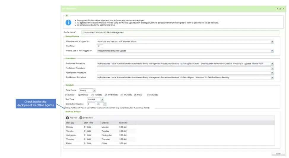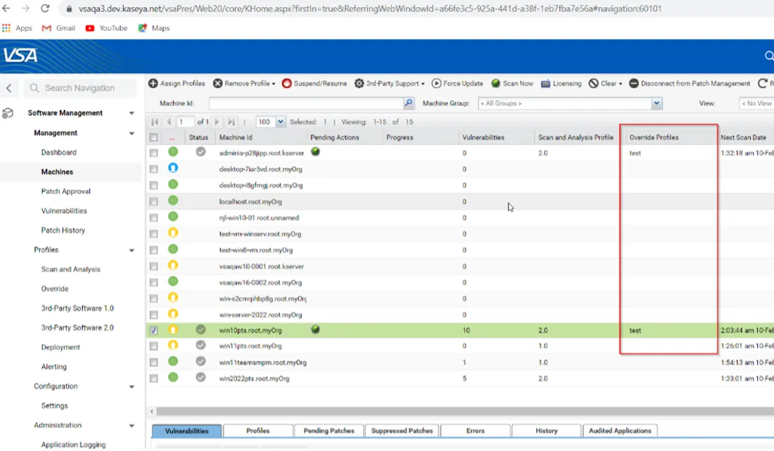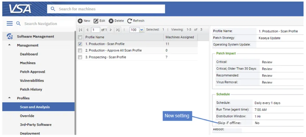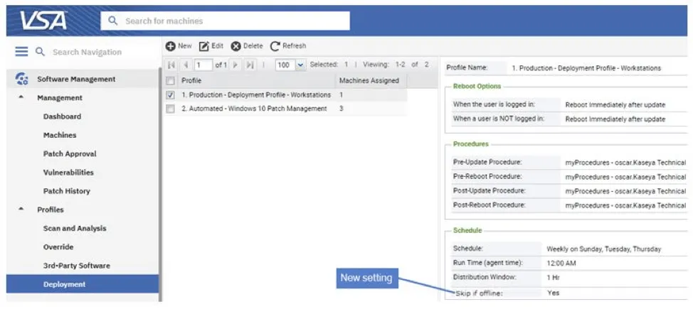 The 9.5.9 release of VSA includes Override Profile support for the new “Days from Release” search criteria, which allows users to create an override based on the number of days since the release. This can help ensure machines are kept up to date with a chosen “grace period.” Override Profiles now also supports third-party software patches within their unique rules, including CVE Code, Description, Name, Product, Release Date and Vendor.