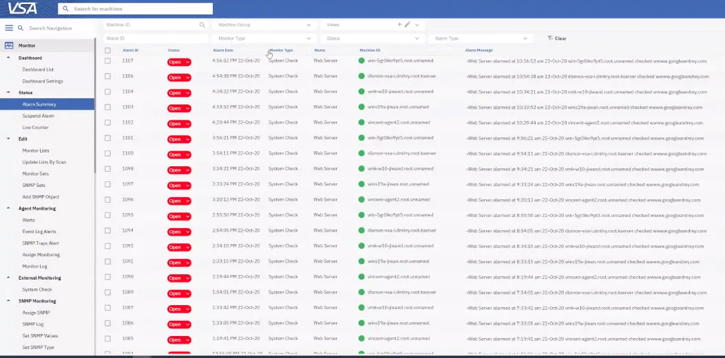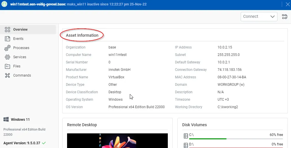The VSA 9.5.9 release includes enhanced agent support with all VSA functionality for Windows 11, Windows Server 2022 and macOS 12 (Monterey), with a few exceptions. See the release notes for details.