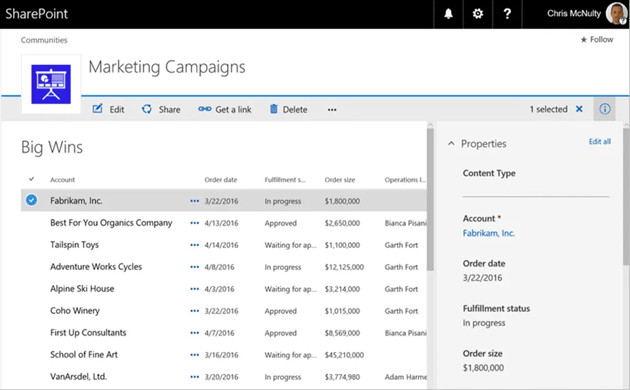 Figure 1. A typical view of a list in SharePoint Online.