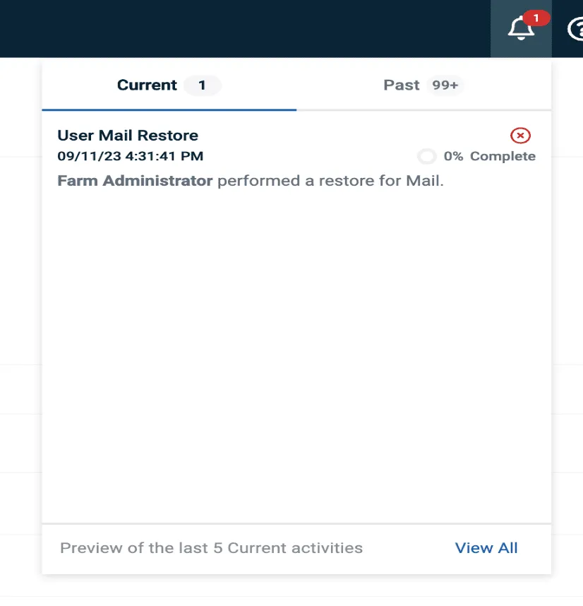 Notifications now include a “View Details” button to view restore information or view/download exports in the Activity Log.