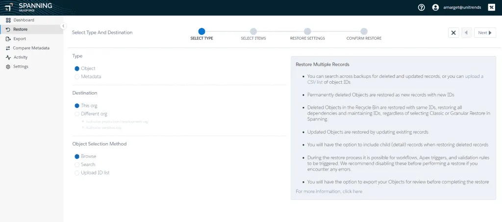 Spanning Backup for Salesforce: Point-in-Time Restore and Export