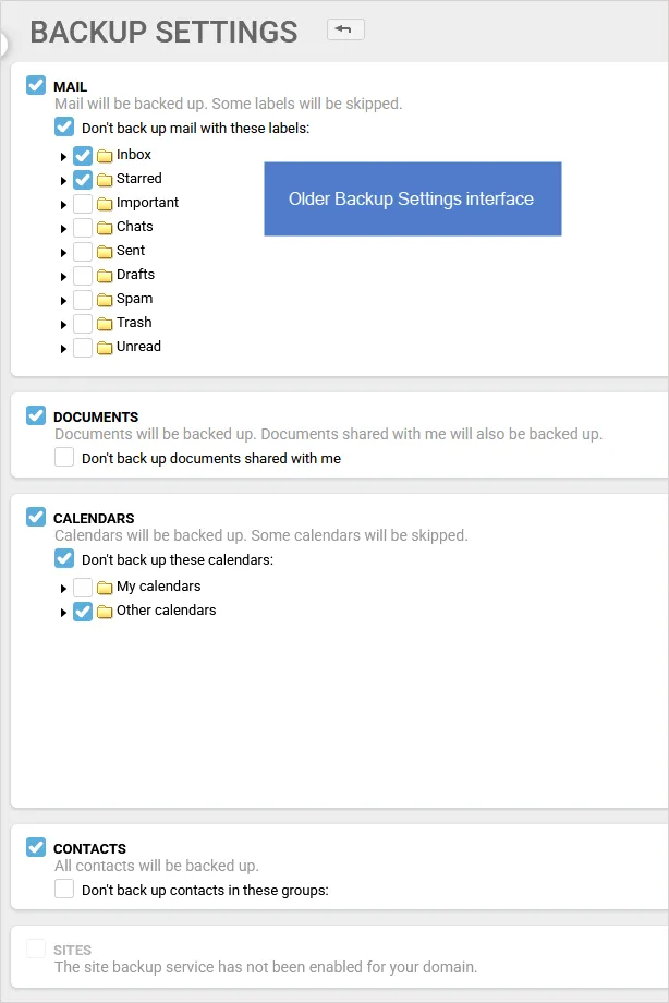 Figure 2: Older Backup Settings interface