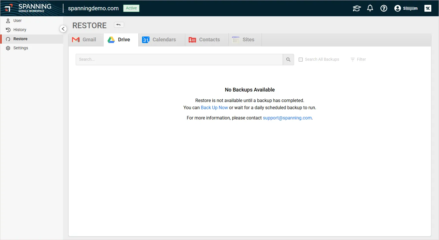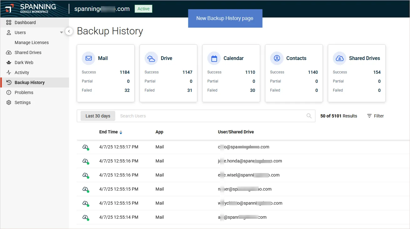 Detailed history: View comprehensive backup details for both Users and Shared Drives.