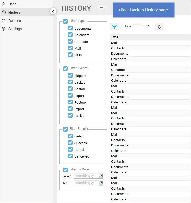 Figure 3: New Backup History page