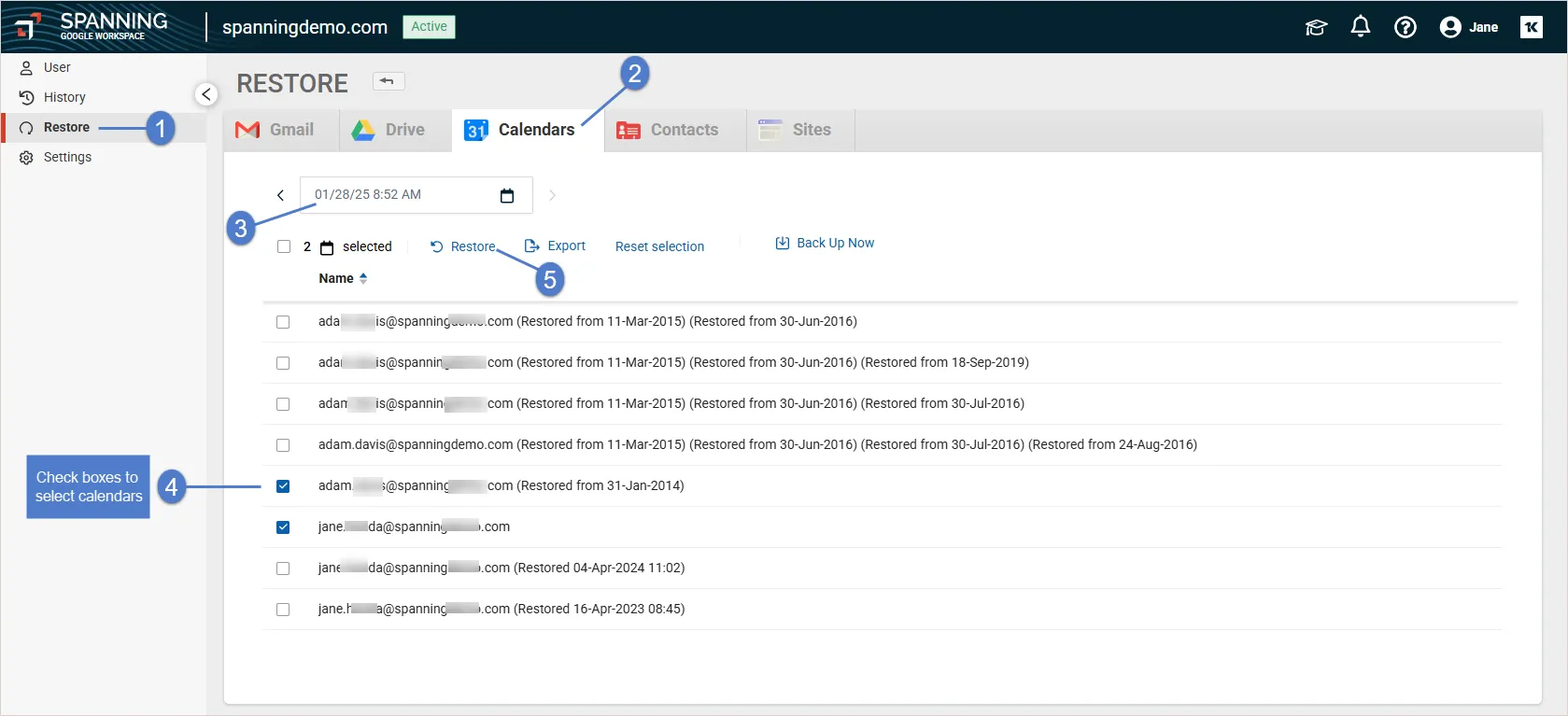 Here’s a step-by-step guide on how to view and export your point-in-time backups in Spanning: