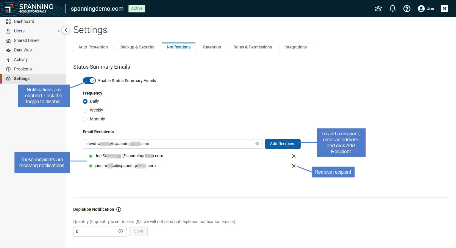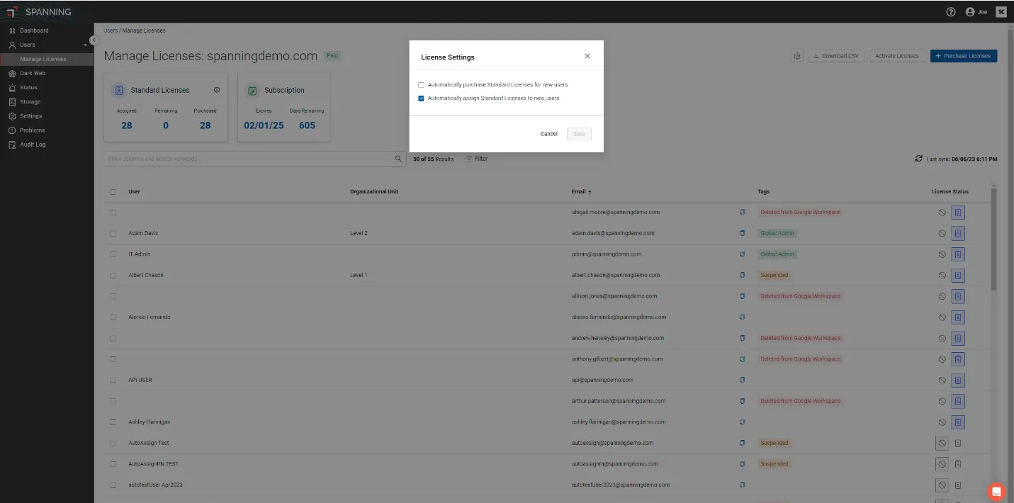 Now with Spanning Backup for Google Workspace, you can opt-in to automatically purchase additional licenses to meet the needs of your growing organization. Just set it and forget it. Once a day, Spanning will check for newly added users and automatically enable protection if the setting is enabled.
