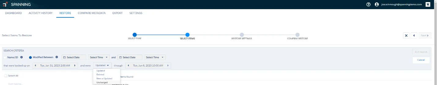 During a data loss incident, the last thing you want is to waste time searching through your backups. It might be unclear which backup batch the last good version of a record or field was in. Now with Spanning Backup for Salesforce, you can use the modified time as an additional search filter and specify granular time ranges when searching through large backup batches.