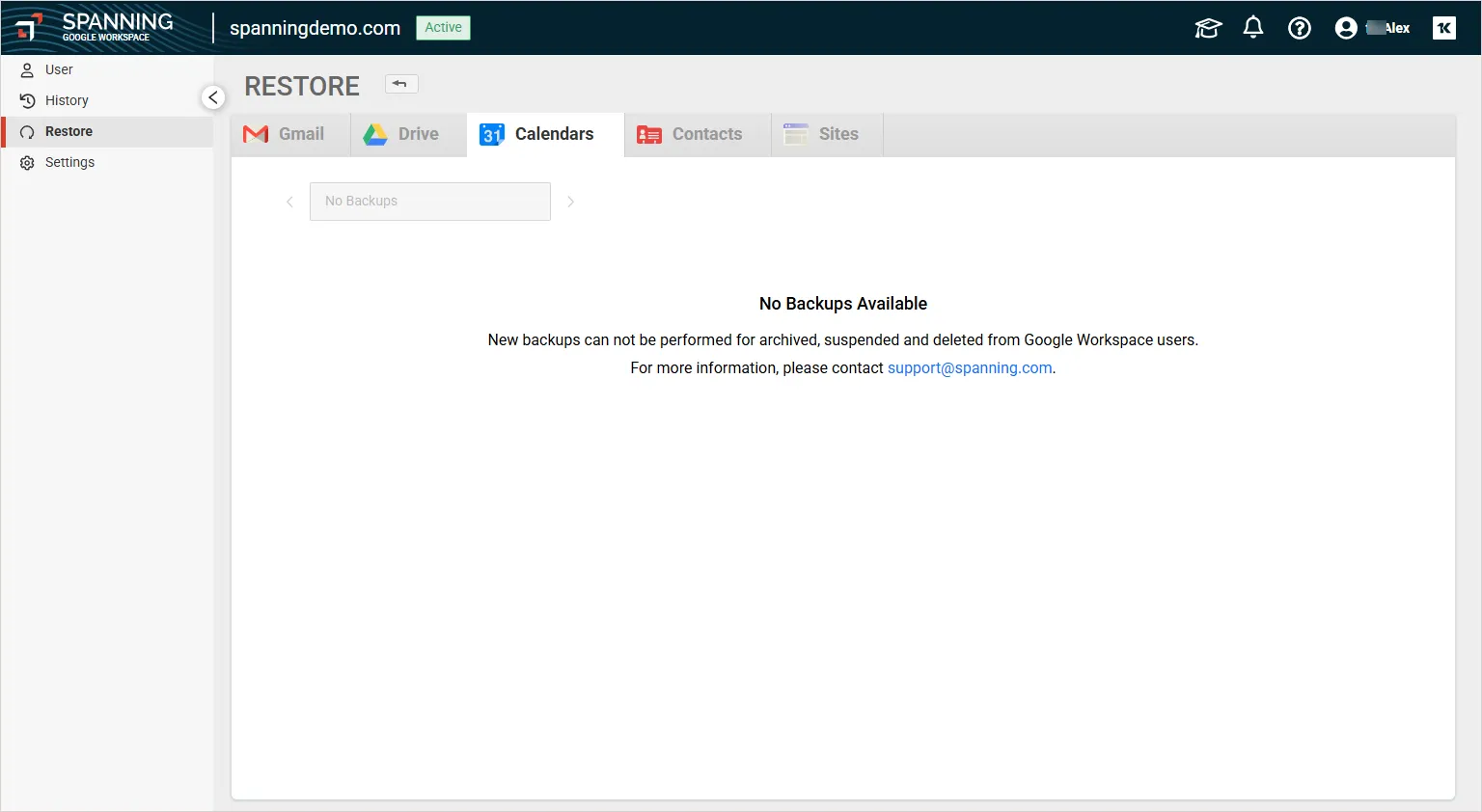 When a user being actively protected by a Spanning Backup Standard License is deleted from your Microsoft 365 tenant, Spanning assigns the user an archived license automatically (if available), which is cheaper than the standard license. When an archived license is assigned, new backups will not run for that particular user. Any backup data collected prior to the assignment of the archived license or the deletion of the user in Microsoft 365 (whichever comes first) can be restored to another user, mailboxes or exported. However, if no archived license is available, the deleted user will continue to be protected on standard license terms. Spanning’s archived user licenses provide organizations with a cost-effective way to retain previously backed-up data for future restoration or export.