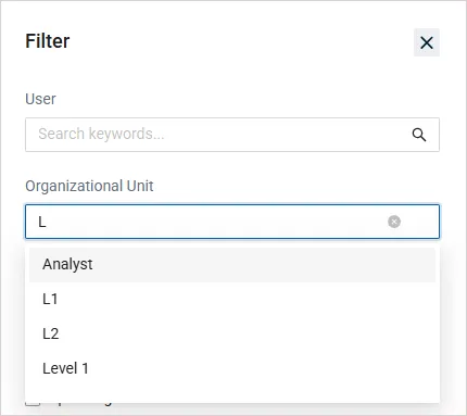 Figure 10: In the Filter on the “Users” and “Manage Licenses” pages, the “Organizational Unit” is now an auto-complete field.