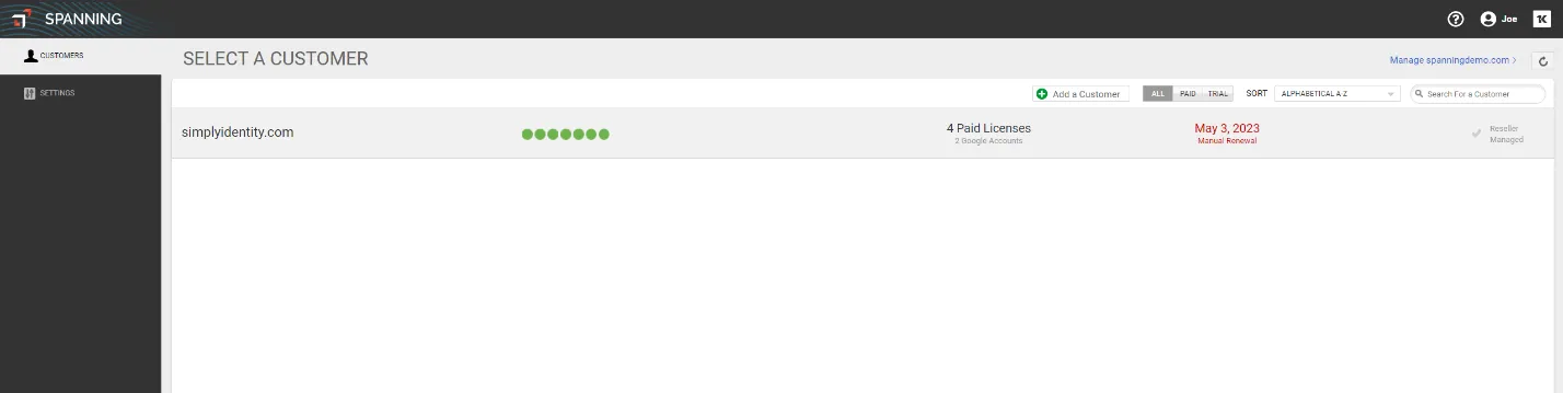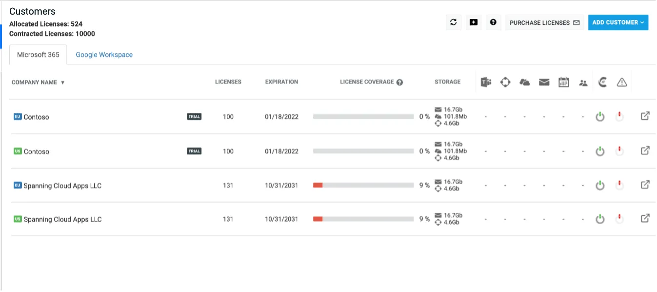 Manage all Spanning products through a single console (Microsoft 365, Google Workspace and Salesforce).