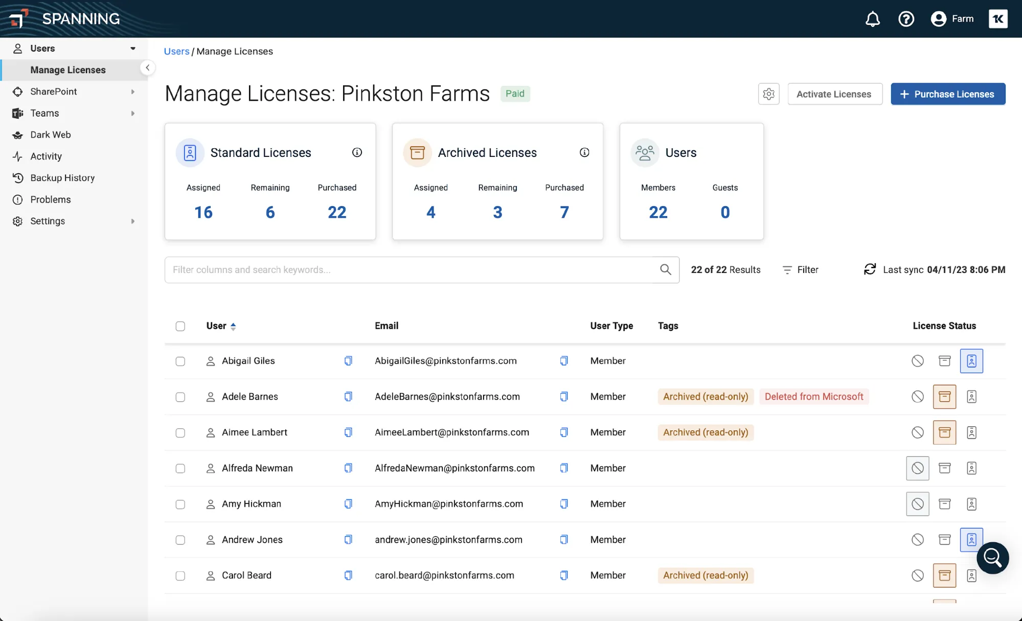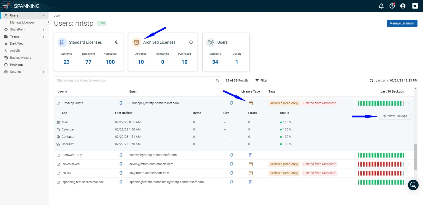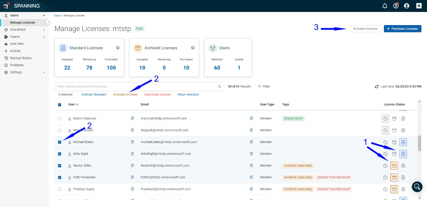 Spanning Backup for Microsoft 365: Archived User Licensing