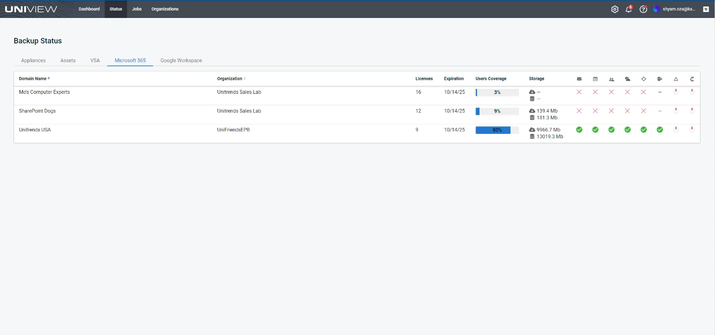 Now customers using Kaseya VSA and Unitrends UniView will be able to see the volume of Microsoft 365 data Spanning can backup.