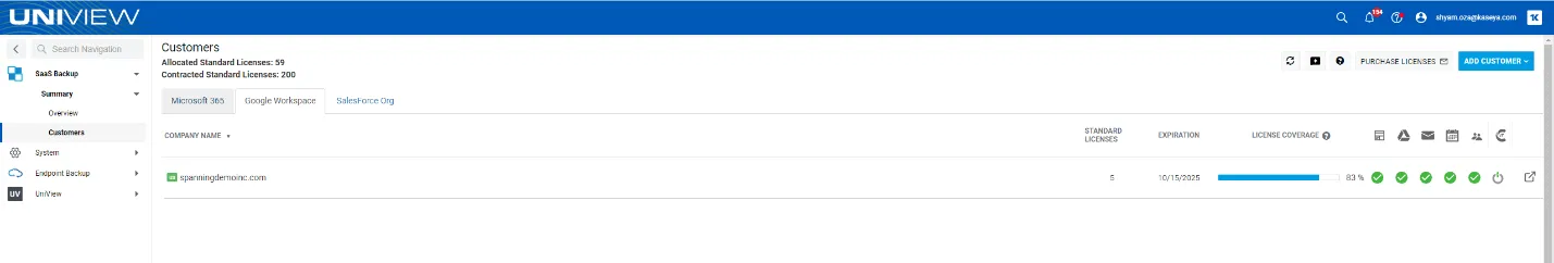 Now customers using Kaseya VSA and Unitrends UniView will be able to log into Spanning for Google Workspace. Customers will also be able to see the last seven days backup statistics for Google Workspace within VSA and UniView.