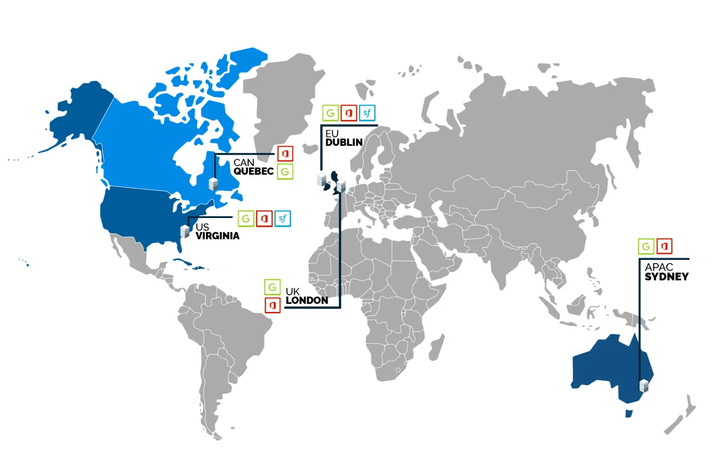 Due to regulatory requirements, backups often need to stay in-region. Spanning Backup for Salesforce helps you stay compliant with three more data centers — in the United Kingdom, Canada and Australia. Your data never leaves the region you operate in, ensuring compliance with regulations.